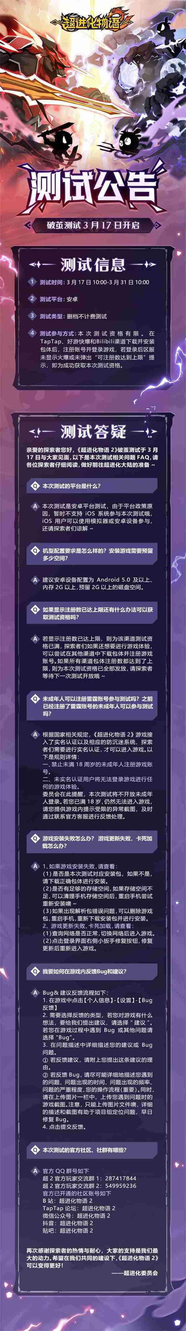 《超进化物语2》首次限号不计费删档测试——「破茧测试」将于3月17日开启,,随我们确认测试细节,,明天迈出踏上超进化大陆的第一步吧!!