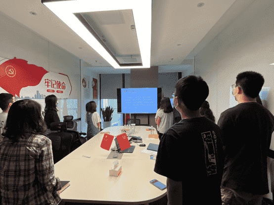 而后,,,全体党员一起重新学习了解了目前的入党流程要求,,各支部也将在后续工作中进一步发挥支部职能,,,,做好发展党员工作。。最后,,,全体党员面向党旗,,重温入党誓词。。