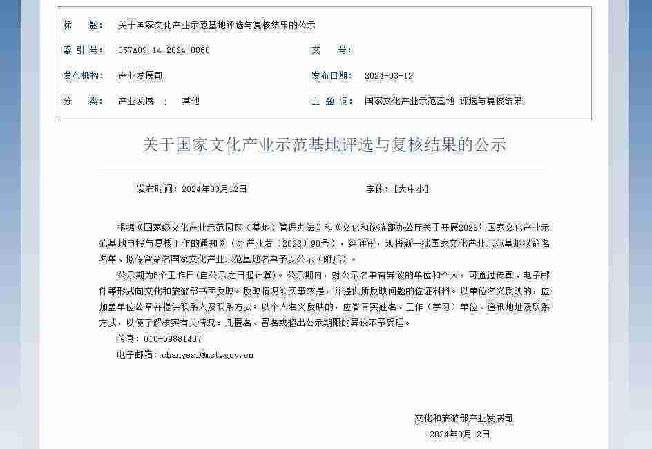 新一批国家文化产业示范基地公示,,,,PA旗舰厅成功入围
