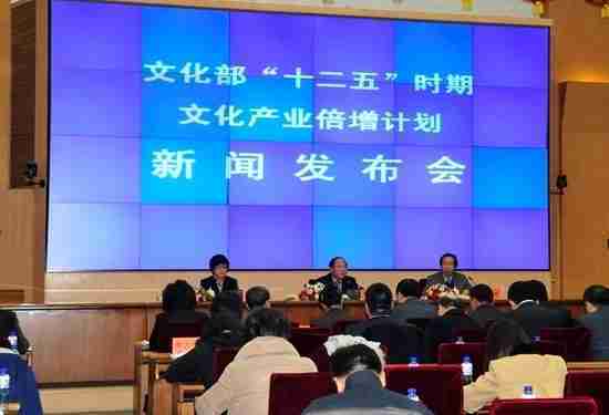 2月28日下午,,,文化部在京召开新闻发布会,,,正式向社会发布《文化部“十二五”时期文化产业倍增计划》,,,,提出了 “十二五”期间文化部门管理的文化产业增加值年平均现价增长速度高于20%,,,2015年比2010年至少翻一番,,实现倍增的奋斗目标。。。